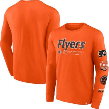 Celebrate your unwavering Philadelphia Flyers fandom with the Men's Fanatics Branded Orange Philadelphia Flyers Strike the Goal Long Sleeve T-Shirt. Its bold screen print graphics proudly display your allegiance to the Philadelphia Flyers, making it the perfect choice for game days or any day you want to show your support. Made from durable polyester, this long sleeve tee ensures comfort and breathability, allowing you to cheer on the Philadelphia Flyers in style.