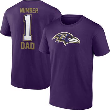 Show appreciation for Dad's care and support with this Baltimore Ravens Father's Day T-shirt from Fanatics Branded. The shirt features classic team graphics on the front and a bold #1 on the back, reflecting his status as the biggest fan in your life. Made from classic, breathable cotton, this shirt ensures comfort and style for your dad during the next Baltimore Ravens game day.