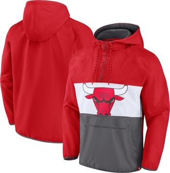 Make your Chicago Bulls spirit noticeable in rainy conditions by wearing this Anorak Flagrant Foul Hoodie half-zip jacket from Fanatics Branded. Its color-block design features an adjustable hood, breathable mesh lining and snap pocket. Raglan sleeves allow for more flexible movement in this Chicago Bulls outerwear.