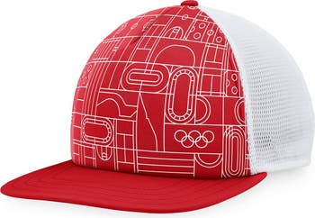 Men's Fanatics Branded Red Olympic Games Five-Panel Trucker Snapback Hat