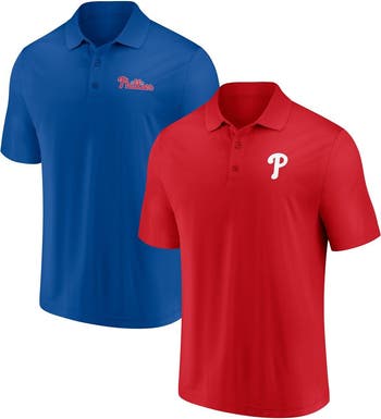 The Men's Fanatics Branded Red/Royal Philadelphia Phillies Dueling Logos Polo Combo Set is a stylish and comfortable choice for any Phillies fan. Screen print graphics and three-button placket add sophistication, while durable polyester material ensures a long-lasting fit. Whether cheering on the Phillies at the ballpark or showing support around town, this polo is the perfect way to represent your team.