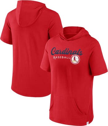 The Men's Fanatics Branded Red St. Louis Cardinals Offensive Strategy Short Sleeve Pullover Hoodie is the perfect way to show your support for the St. Louis Cardinals. Made from a lightweight cotton and polyester blend, this hoodie is ideal for mild temperatures. The front pouch pocket is perfect for storing your essentials, and the drawstring hood will keep you warm on chilly nights. The screen-printed graphics proudly display your St. Louis Cardinals pride, and the rounded hem gives this hoodie a stylish look.