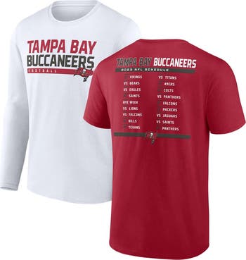 The Men's Fanatics Branded Red/White Tampa Bay Buccaneers Two-Pack 2023 Schedule T-Shirt Combo Set is the ultimate way to show your unwavering support for the Tampa Bay Buccaneers. This exclusive set includes both a long sleeve and short sleeve T-shirt, each featuring bold screen print graphics that proudly display the team's 2023 schedule. Whether you're cheering from the stands or watching the game at home, this combo set will keep you stylish and ready for every Buccaneers victory.