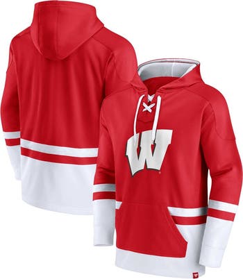 The Men's Fanatics Branded Red Wisconsin Badgers First Battle Pullover Hoodie is the perfect way to show your support for the Wisconsin Badgers. Made from durable polyester, this midweight hoodie features a cozy fleece lining to keep you warm during chilly game days. The heat-sealed graphics proudly display your Wisconsin Badgers pride, while the lace-up neckline and mesh-lined hood without a drawstring add a touch of style. Whether you're cheering from the stands or simply showing your support, this hoodie is the perfect way to represent the Wisconsin Badgers in style.