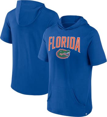 The Men's Fanatics Branded Royal Florida Gators Outline Lower Arch Hoodie T-Shirt is the perfect way to show your unwavering support for the Florida Gators. Made from a comfortable cotton and polyester blend, this hoodie features a front pouch pocket for convenience and a hood without a drawstring for a clean look. The screen print graphics proudly display the Florida Gators logo, making it clear where your allegiance lies. Whether you're cheering on the Gators at the stadium or just showing your team spirit around town, this hoodie is sure to become a favorite.