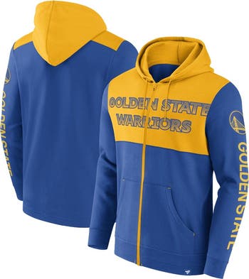 The Men's Fanatics Branded Royal/Gold Golden State Warriors Skyhook Colorblock Full-Zip Hoodie is the ultimate way to show unwavering support for the Golden State Warriors. This midweight hoodie features a gradient wordmark design and embroidered graphics that proudly display team spirit. The fleece lining provides warmth and comfort, while the full-zip closure and drawstring hood offer adjustable coverage. Whether cheering from the stands or hanging out, this hoodie is the perfect way to represent the Golden State Warriors in style.