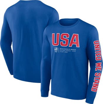 The Men's Fanatics Branded Royal Team USA Strive For Gold Long Sleeve T-Shirt is the perfect way to show your support for Team USA. Made from a comfortable cotton and polyester blend, this long sleeve tee features screen print graphics that proudly display your Team USA pride. The crew neck design makes it easy to wear, and the relaxed fit ensures a comfortable feel. Whether you're cheering on Team USA at the Olympics or just showing your support for your favorite team, this long sleeve tee is a must-have for any fan.