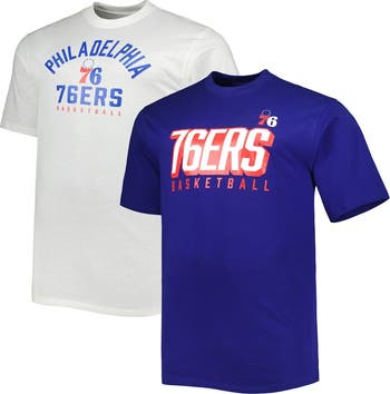The Men's Fanatics Branded Royal/White Philadelphia 76ers Big & Tall Two-Pack T-Shirt Set is the perfect way to show your support for the Philadelphia 76ers. This set includes two T-shirts, one in royal blue and one in white, both featuring screen-printed graphics of the Philadelphia 76ers logo. Made of 100% cotton, these T-shirts are designed to fit comfortably on larger frames. Whether you're cheering on the Philadelphia 76ers at the game or relaxing at home, this set is sure to keep you comfortable and stylish.