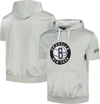 The Men's Fanatics Branded Silver/White Brooklyn Nets Short Sleeve Pullover Hoodie is the perfect way to show your support for the Brooklyn Nets. Made from durable polyester, this midweight sweatshirt is ideal for moderate temperatures. Embroidered fabric applique and heat-sealed graphics proudly display your Nets pride, while the front pocket pouch provides convenient storage for essentials. The fleece lining adds extra warmth, making this hoodie perfect for cheering on the Nets from the stands or the comfort of your own home.