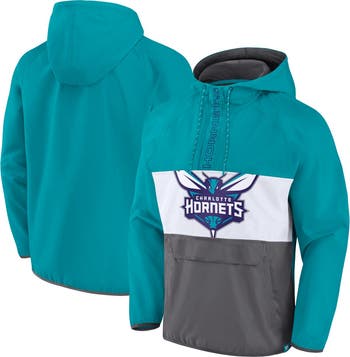 Make your Charlotte Hornets spirit noticeable in rainy conditions by wearing this Anorak Flagrant Foul Hoodie half-zip jacket from Fanatics Branded. Its color-block design features an adjustable hood, breathable mesh lining and snap pocket. Raglan sleeves allow for more flexible movement in this Charlotte Hornets outerwear.