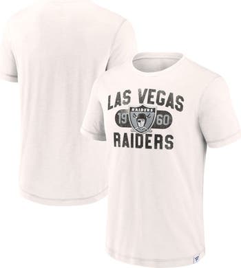 The Men's Fanatics Branded White Las Vegas Raiders Team Act Fast T-shirt is the perfect way to show unwavering support for the Las Vegas Raiders. With distressed screen print graphics and woven applique, this T-shirt proudly displays team spirit. Made from a comfortable cotton and polyester blend, it's perfect for game day or any day to show Raiders pride.
