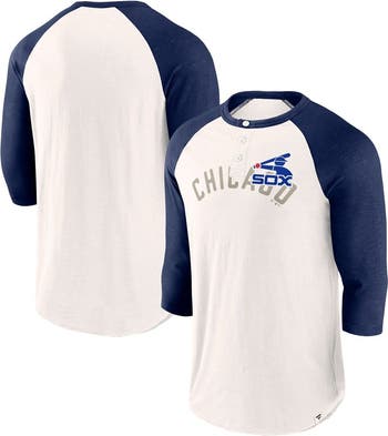 The Men's Fanatics Branded White/Navy Chicago White Sox Backdoor Slider Raglan 3/4-Sleeve T-shirt is the perfect way to show your support for the Chicago White Sox. With raglan sleeves, a rounded hem, and screen-printed graphics, this shirt is both stylish and comfortable. The three-button placket adds a touch of sophistication, while the cotton material ensures you'll stay cool and comfortable all day long. Whether you're cheering on the White Sox at the ballpark or relaxing at home, this shirt is sure to become a favorite.