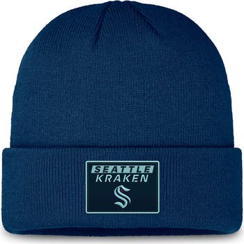 To show team spirit while keeping warm, sport this Seattle Kraken Authentic Pro Cuffed Knit Hat from Fanatics. A knit design supplies the perfect stretch for full coverage and warmth. A timeless Seattle Kraken logo on the cuff puts your fandom front and center.