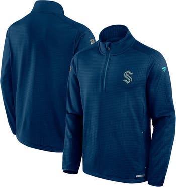 Head to the stadium or a watch party in the same style as your Seattle Kraken with this Authentic Pro Rink Quarter-Zip Top by Fanatics. Its grid fabric provides a comfortable feel, while soft fleece lining adds warmth. The team logo patch gives this Seattle Kraken top an official look.