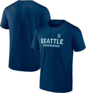 Represent the energy that the Seattle Kraken bring to the ice in this Official Team Wordmark T-Shirt from Fanatics. Made from soft, breathable 100% cotton jersey, this tee keeps you comfortable whether you're at the arena or watching from home. The rib-knit collar provides a classic look, while the screen print graphics boldly display the official Seattle Kraken wordmark.