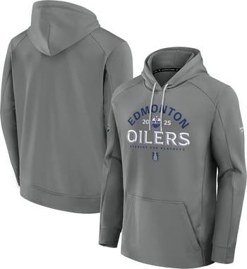 Men's Fanatics Gray Edmonton Oilers 2025 Stanley Cup Playoffs Authentic Pro Rink Fly Fleece Pullover Hoodie