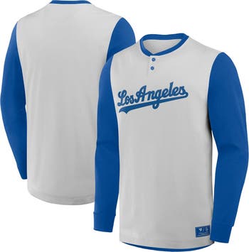 Men's Fanatics Gray/Royal Los Angeles Dodgers Clubhouse Long Sleeve Henley Shirt