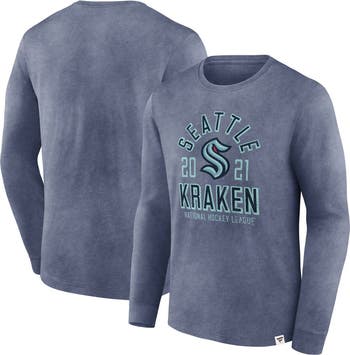 Men's Fanatics Heather Deep Sea Blue Seattle Kraken Keep The Zone Long Sleeve T-Shirt