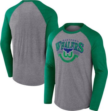 Rep your Hartford Whalers pride in vintage style with this Goal Crease Raglan Tri-Blend Long Sleeve T-Shirt from Fanatics. It boasts a classic crew neck and raglan sleeves for a sporty, comfortable fit that's perfect for everyday wear. With distressed screen print graphics, this shirt lets you show off your Hartford Whalers fandom.
