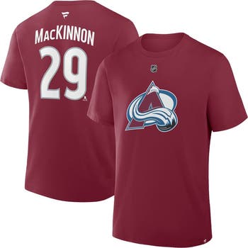 Rep your favorite Colorado Avalanche player in bold style with this Nathan MacKinnon Authentic Stack Name & Number T-Shirt from Fanatics. Featuring printed graphics that mirror the look of official jerseys, it lets everyone know who you're cheering for on game day. Made with lightweight, breathable fabric and a classic fit, this Nathan MacKinnon tee is ideal for everyday Colorado Avalanche pride.