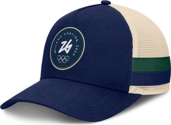 Gear up to cheer on the world's best athletes with this Milano Cortina 2026 Winter Olympics Prestige A-Frame Adjustable Hat from Fanatics. Its two-tone design features a large logo patch accentuated by the coordinating stripes on breathable mesh panels. A snap closure lets you quickly and easily adjust the fit of this Milano Cortina 2026 hat.