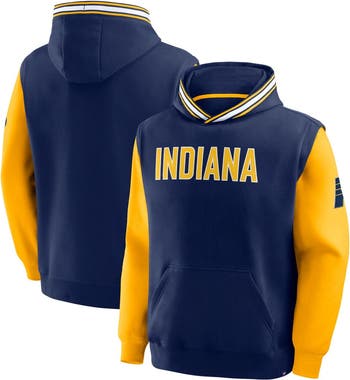 Stay warm and comfortable while you rep your favorite NBA team with this Indiana Pacers Half Court Shot Clock Fastbreak Hoodie from Fanatics. Crafted from soft cotton and polyester, this heavyweight pullover protects you from the chilliest game day weather. The team name and logo graphics printed on the front and sleeve display your love for the Indiana Pacers for all to see while the rib-knit cuffs move with you, letting you celebrate every basket effortlessly once basketball season rolls around.