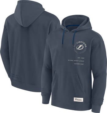 Stay warm in trendy Tampa Bay Lightning outerwear with this Future Ground Info Pullover Hoodie by Fanatics. Its peached-face fabric and fleece lining create a super-soft feel, while dropped shoulders provide flexible movement. A drawstring hood lets you adjust the coverage of this Tampa Bay Lightning hoodie for added comfort.