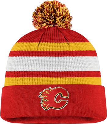 Stay warm while representing your Calgary Flames with this Authentic Pro Cuffed Pom Knit Hat from Fanatics. This Calgary Flames knit hat features a classic cuffed design with a playful pom on top, adding a touch of fun to your cold-weather gear. Made from 100% acrylic, this hat offers exceptional warmth and comfort, making it the perfect choice for cheering on the Flames at the Saddledome or braving the elements around town.