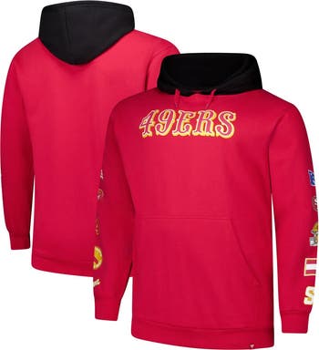 Embrace your San Francisco 49ers pride with this bold and stylish Patched Out Pullover Hoodie from Fanatics. This pullover hoodie boasts a fleece lining for a soft and cozy feel, making it perfect for moderate temperatures. Featuring a printed team wordmark across the front and vertical team and conference logos down the sleeves, it proudly showcases your 49ers spirit.