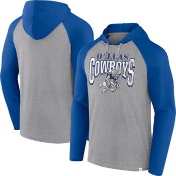 Level up your Dallas Cowboys game-day style with this Fanatics Under Center Long Sleeve Hoodie T-shirt. Featuring contrast-color raglan sleeves, this hoodie allows for an increased range of motion, making it perfect for game day activities. The distressed team wordmark and logo printed across the chest let everyone know who you're rooting for, while the adjustable hood allows for customizable coverage.