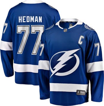 Refresh your Tampa Bay Lightning gear with this Victor Hedman Home Captain Patch Breakaway jersey from Fanatics. Its eye-catching replica design is inspired by the uniform your Tampa Bay Lightning wear on the ice. This Victor Hedman jersey is also crafted with lightweight trims, breathable material and a tailored fit to ensure a comfortable experience on game day.