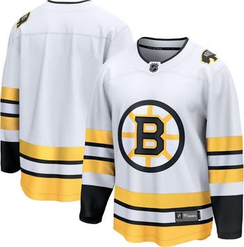 It's time to honor a century of Boston Bruins history with this Away Breakaway Jersey from Fanatics. The jersey features a comfortable, oversized fit perfect for layering and is constructed from soft, double-knit fabric. The sewn-down sublimated embossed twill cresting and heat-pressed sublimated embossed twill shoulder patches with faux zigzag stitching add a touch of authenticity. A direct embroidered NHL Shield and Fanatics branded woven jock tag complete the look, making this jersey a must-have for any dedicated Bruins fan.