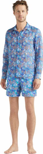 Make an entrance in this fishy print unisex shirt. Crafted from cotton voile and cut in a slim fit, the turtle embroidered on the hip adds a stylish detail.