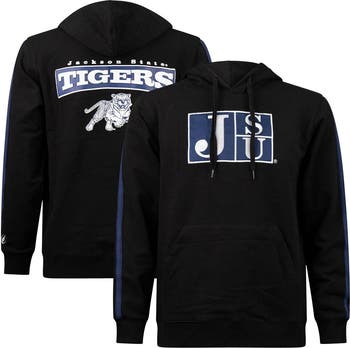 The Men's FISLL Black Jackson State Tigers Oversized Stripes Pullover Hoodie is the perfect way to show your support for the Jackson State Tigers. This midweight hoodie is made of a soft cotton and spandex blend, making it comfortable to wear all day. Sewn-on stripes and a contrast team-color hood lining add a touch of style, while the embroidered fabric applique and low-puff screen print graphics proudly display your Jackson State Tigers pride. Whether you're cheering on the Tigers at the game or relaxing at home, this hoodie is sure to keep you warm and comfortable.