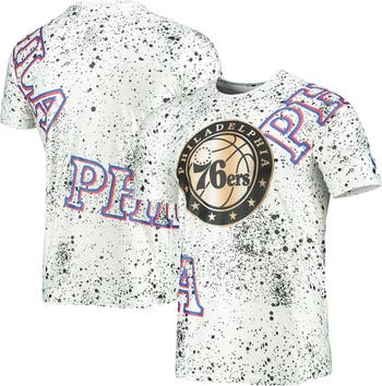 The Men's FISLL White Philadelphia 76ers Gold Foil Splatter Print T-Shirt is a must-have for any true Philadelphia 76ers fan. With its sublimated graphics, this shirt is sure to turn heads and show your support for the team. Made from durable polyester, this shirt is built to last and will keep you comfortable all game long. Whether you're cheering on the Philadelphia 76ers from the stands or watching the game at home, this shirt is the perfect way to show your team spirit.