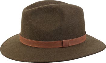 Step into fall in style with this rustic fedora hat. Its sueded leather hat band adds a pop of contrast to the wool exterior. The interior contains a goat skin sweatband made for comfort. Whether you are attending an outdoor occasion or simply creating a casual outfit, this sleek and stylish hat will fit the occasion perfectly in the cooler months. This item can only be shipped to a United States address.