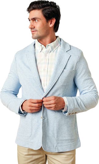 Our tailored knit blazer in soft organic cotton blend french terry pairs comfort with style. Features classic details like a notched lapel, faux horn buttons, front patch pockets, chest pocket, and back vent. This one looks just as good with jeans and a t-shirt as it does for a dressy occasion.