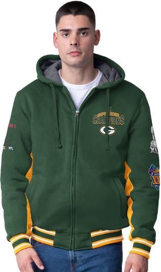 Celebrate a classic Green Bay Packers moment with this G-III Extreme No Huddle Commemorative Full-Zip Hoodie Jacket. This Green Bay Packers hoodie jacket boasts a team color body with secondary team color inserts and commemorative patches on the sleeves, making it a stylish way to show your team spirit. The fleece lining provides added warmth, while the adjustable hood offers extra protection from the cold, making it perfect for cheering on the Packers from Lambeau Field or the comfort of your home.