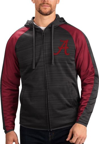 Showcase your unwavering Alabama Crimson Tide fandom with this Neutral Zone full-zip track jacket hoodie from G-III Sports by Carl Banks. The team's logo and wordmark is imposed over an exciting team-color design that is sure to get you amped up for game day. Thanks to the raglan sleeves, you'll be able to effortlessly cheer on your favorite Alabama Crimson Tide players with the added range of motion.