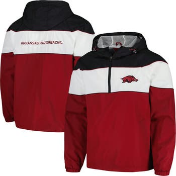 Brave windy, rainy or chilly weather without losing an ounce of your Arkansas Razorbacks pride in this Center Line half-zip hoodie jacket from G-III Sports by Carl Banks. Its design keys in on comfort and storage with mesh lining, a lightweight build, raglan sleeves, two front pockets and a zipper garage. An adaptive, adjustable hood protects you from all conditions, while Arkansas Razorbacks colors and embroidered graphics keep you looking sharp at the same time.