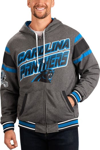 Take your Carolina Panthers style to the extreme with this Full Back hoodie from G-III Sports by Carl Banks. Its reversible design gives you two distinct looks with embroidered details on the team color side and printed graphics on the gray side. Coordinating stripes add the final touch to this Carolina Panthers full-zip jacket that stands out anywhere you go.