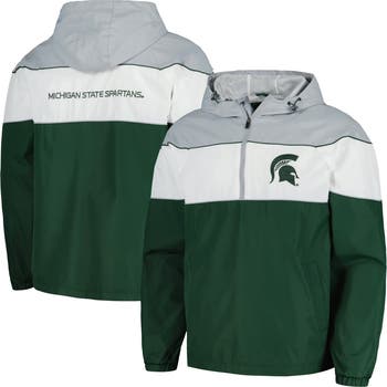 Brave windy, rainy or chilly weather without losing an ounce of your Michigan State Spartans pride in this Center Line half-zip hoodie jacket from G-III Sports by Carl Banks. Its design keys in on comfort and storage with mesh lining, a lightweight build, raglan sleeves, two front pockets and a zipper garage. An adaptive, adjustable hood protects you from all conditions, while Michigan State Spartans colors and embroidered graphics keep you looking sharp at the same time.