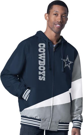 Have the ability to switch up your Dallas Cowboys style on the go with this Dual Threat Reversible Jacket from G-III Sports by Carl Banks. This midweight, full-zip jacket is suitable for moderate temperatures and boasts a reversible design, offering two distinct styles to showcase your team pride. Side A features woven polyester material with embroidered twill applique team graphics and bold color blocking, while Side B presents a comfortable cotton/polyester blend with a custom, screen-printed team wordmark and eye-catching splatter paint design. The hood with drawstrings provides customized coverage, and the rib-knit cuffs and hem feature team-colored stripes for a classic athletic look. With its versatile design and construction, this jacket is the perfect way to represent the Dallas Cowboys in style.