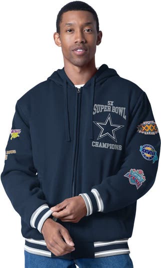 Show your Dallas Cowboys pride with this Power Forward Commemorative Full-Zip Hooded Jacket from G-III Sports by Carl Banks. The relaxed fit provides a loose and roomy feel across the chest, shoulders, and body, ensuring maximum comfort whether you're at the game or running errands. The embroidered fabric applique graphics and commemorative logos from Super Bowl victories proudly display your Dallas Cowboys pride, making this jacket a must-have for any true fan.