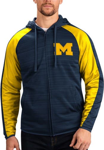 Showcase your unwavering Michigan Wolverines fandom with this Neutral Zone full-zip track jacket hoodie from G-III Sports by Carl Banks. The team's logo and wordmark is imposed over an exciting team-color design that is sure to get you amped up for game day. Thanks to the raglan sleeves, you'll be able to effortlessly cheer on your favorite Michigan Wolverines players with the added range of motion.