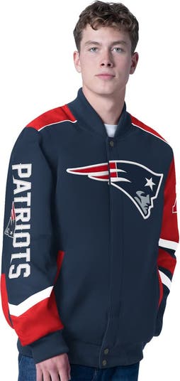 Show your team pride in style with this New England Patriots Prime Time Full-Zip Racing Jacket from G-III Sports by Carl Banks. This midweight jacket is perfect for moderate temperatures, keeping you comfortable without being too bulky. The twill applique team logo and wordmark showcase your New England Patriots team spirit.