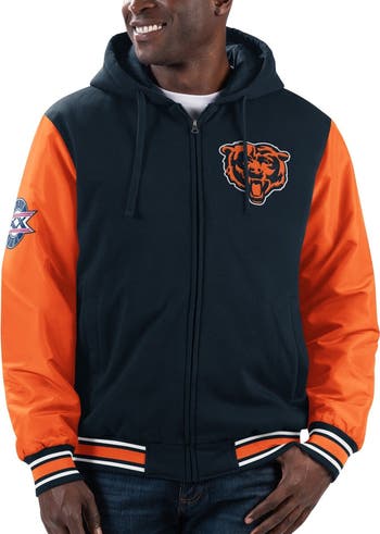 Men's G-III Sports by Carl Banks Navy/Orange Chicago Bears Player Option Full-Zip Hoodie