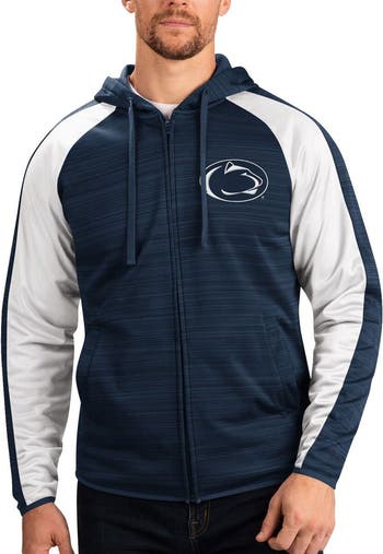 Showcase your unwavering Penn State Nittany Lions fandom with this Neutral Zone full-zip track jacket hoodie from G-III Sports by Carl Banks. The team's logo and wordmark is imposed over an exciting team-color design that is sure to get you amped up for game day. Thanks to the raglan sleeves, you'll be able to effortlessly cheer on your favorite Penn State Nittany Lions players with the added range of motion.