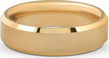 Mens Gold Plated Tungsten Ring 6mm Comfort Fit Brushed Beveled Edge Wedding Band