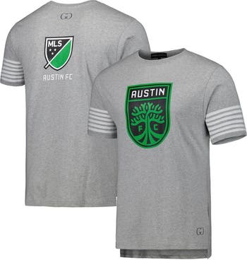 The Men's Grungy Gentleman Gray Austin FC T-shirt is the perfect way to show your support for the Austin FC. Made from a comfortable cotton and polyester blend, this shirt features sewn-on stripes and a droptail hem with side splits for a stylish and sporty look. Whether you're cheering on the team at the stadium or just showing your support around town, this shirt is sure to turn heads.
